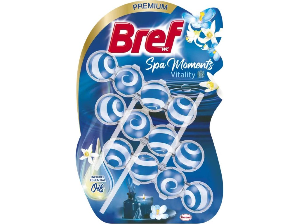Bref Spa Moments tuhý WC blok - Zažijte relaxační a dlouhotrvající vůni při každém spláchnutí! Odpojte se od vnějšího světa a užijte si čas pouze pro sebe. WC blok Bref Spa Moments poskytuje relaxační dlouhotrvající vůni a proměňuje vaši toaletu v oázu klidu. Příjemná vůně se uvolňuje s každým spláchnutím a navozuje útulnou a pohodovou atmosféru. Závěsný WC blok má jedinečné složení s luxusními esenciálními oleji, které byly pečlivě vybrány pro zklidnění vašich smyslů.